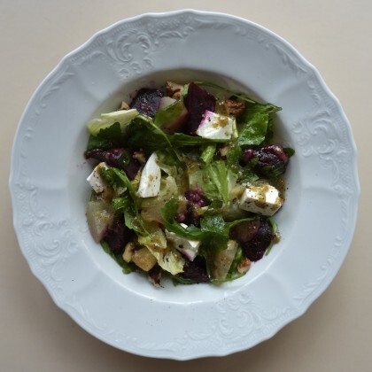 Карпаччо из свёклы с кедровыми орехами и рукколой