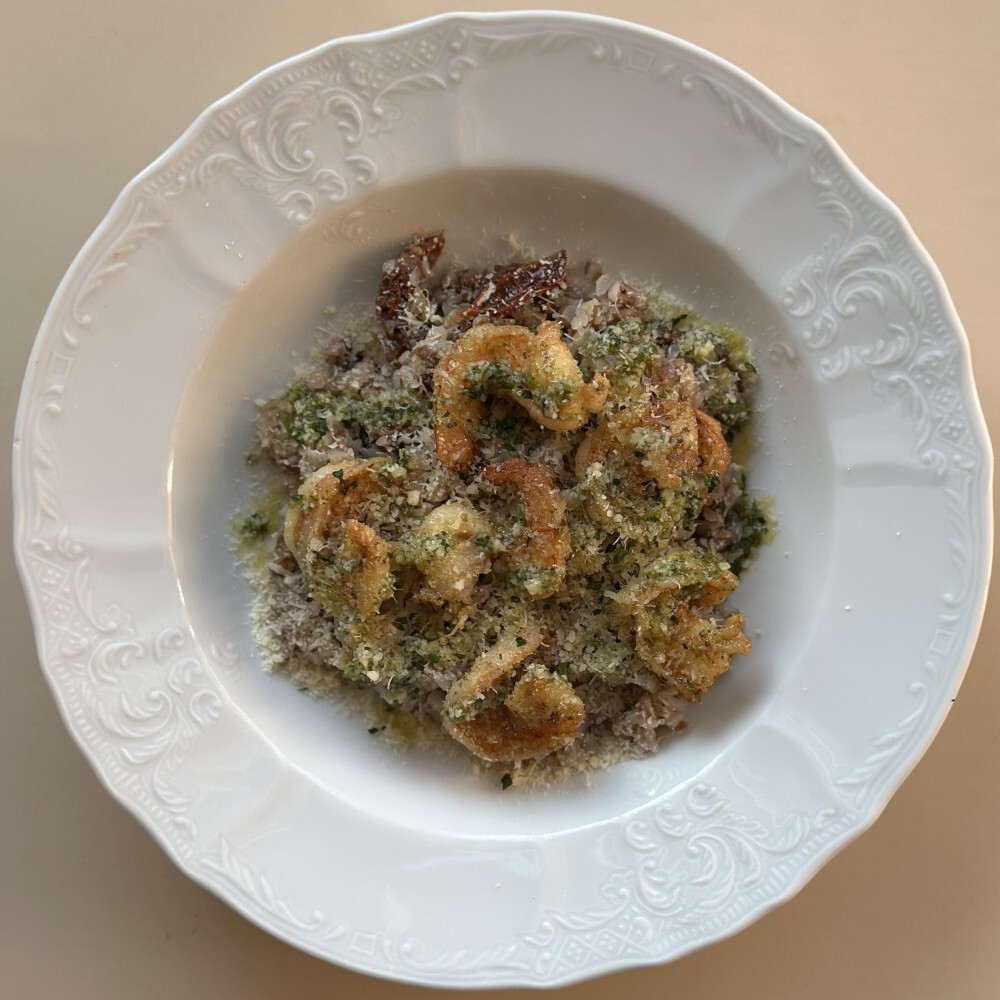 Гречневая каша с креветками и вялеными томатами