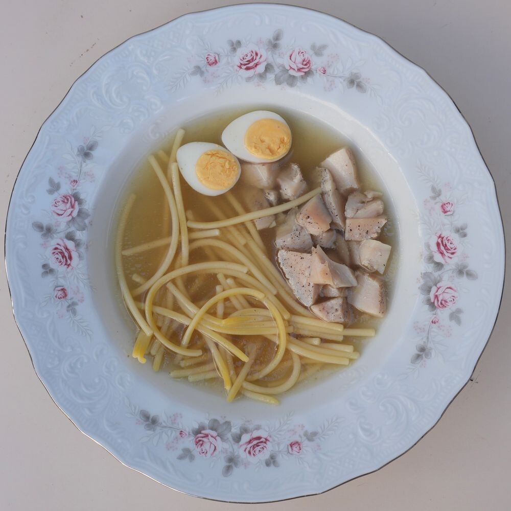Суп куриный с лапшой и перепелиным яйцом