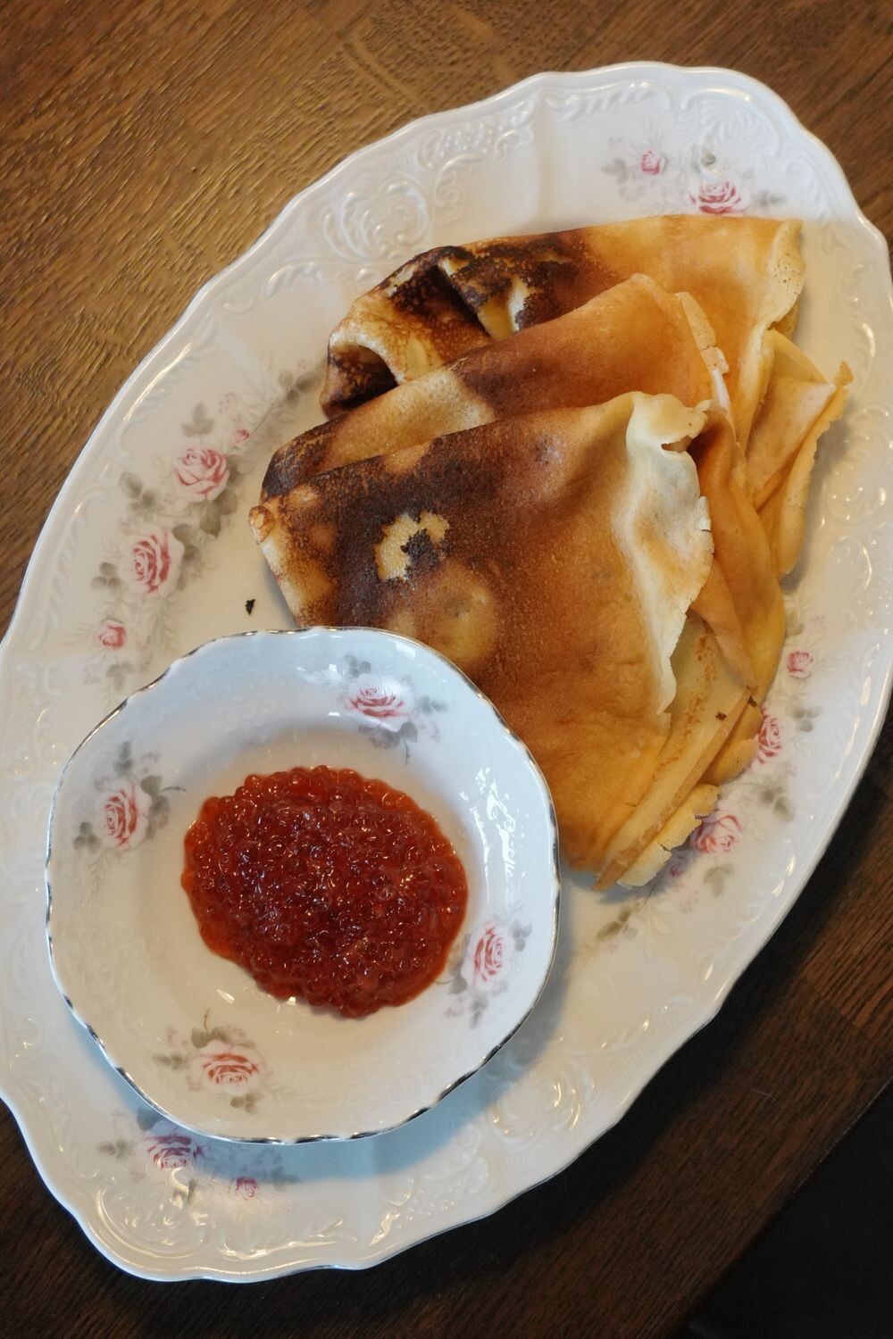 Блины с красной лососевой икрой